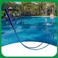 然后是泳池的清洁,对游泳池来说,水中的悬浮物可以通过加入泳池澄清剂后用沙缸过滤器将其过滤掉,但泳池池底积聚的头发、树叶、沙粒等较大脏物则是无法过滤的,这就需要我们使用相应的吸污清洁设备将其吸走或是打捞上来。常用的是游泳池自动吸污机、游泳池手动吸污机及池刷、深水网、浅水网等。