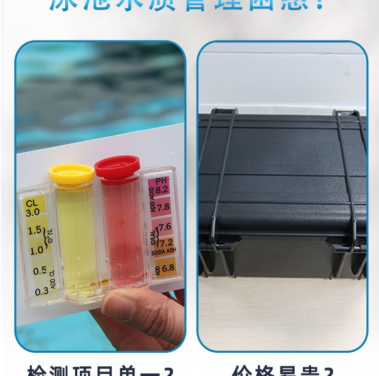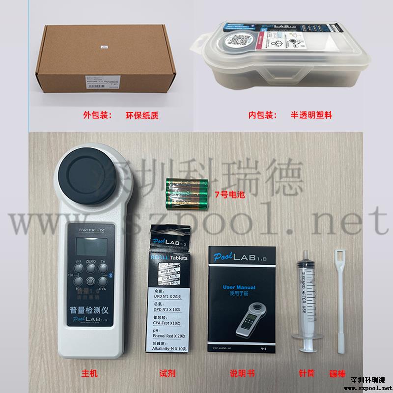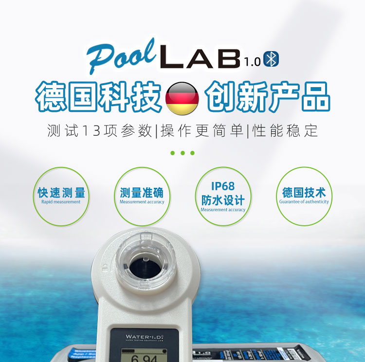 PoolLAB/普量水质检测仪是用于各类游泳池水质检测使用的仪器,它能检测池水中:余氯/pH/氰尿酸/总碱度/结合性余氯/钙硬度等13个项目指标,能快速检测,得出结果,使用简单、易懂、性能可靠等特点,本款游泳池水质检测仪拥有IP68防水级别,在使用的过程不慎掉入水中或涉水不用担心进水,使用寿命长且经济实惠,应对国标GB37488-2019水质项目检测,每个游泳场所适合选择。