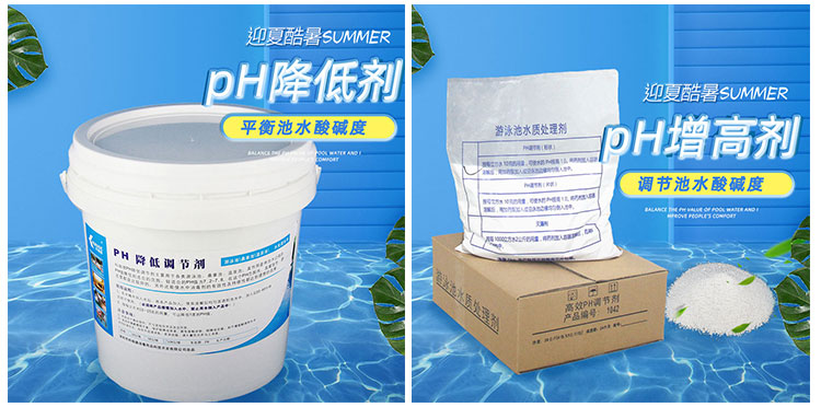池水pH过低,我们可以采用pH增高剂。pH增高剂分两种:一种是大家常见的片碱,一种是碳酸钠。片碱的正确使用方法:按1000 立方水要使pH提高1.0则需要加入10公斤的pH调节剂。使用前,先把pH调节剂倒进桶中进行溶解,然后再沿着池壁把溶解好的处理剂均匀倒进池中(注意:不要在局部位置大面积倒入处理剂,否则该位置的总碱度会被一下子大大提高从而引起水质浑浊。)碳酸钠正确的使用方法,按加入15公斤的碳酸钠可使1000立方米水的pH值提升1。